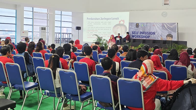 Pada hari minggu lalu tepat tanggal 11 April 2025 telah diselenggarakan Self Infusion Workshop (Pelatihan Suntik Mandiri) yang bertempat di Aula Kiara RSCM dengan acara yang dihadiri para orang tua dan pasien hemofilia dari Departemen Ilmu Kesehatan Anak RSCM Kiara. Selain pelatihan, acara ini juga diisi dengan pembahasan mengenai :