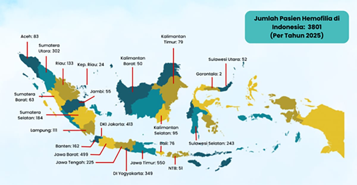 Gambar 2. Persebaran pasien hemofilia di Indonesia per tahun 2025.