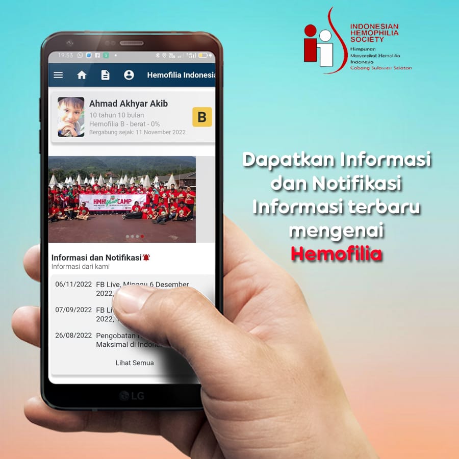 Pada tahun 2019, HMHI telah membuat sebuah aplikasi berbasis Android dengan nama Aplikasi Hemofilia Indonesia. Aplikasi merupakan sebuah terobosan penting yang dikembangkan untuk menjawab kebutuhan komunitas hemofilia di tanah air. Aplikasi ini pertama kali dibuat pada tahun 2019 dan hadir sebagai aplikasi berbasis Android, sehingga dapat menjangkau lebih banyak pengguna, baik dari kalangan pasien, keluarga, maupun tenaga kesehatan. Pengembangan aplikasi ini didukung oleh WFH PACT Program, dengan tujuan utama untuk mempermudah proses pendataan pasien hemofilia secara nasional serta menyediakan akses informasi dan edukasi yang memadai.